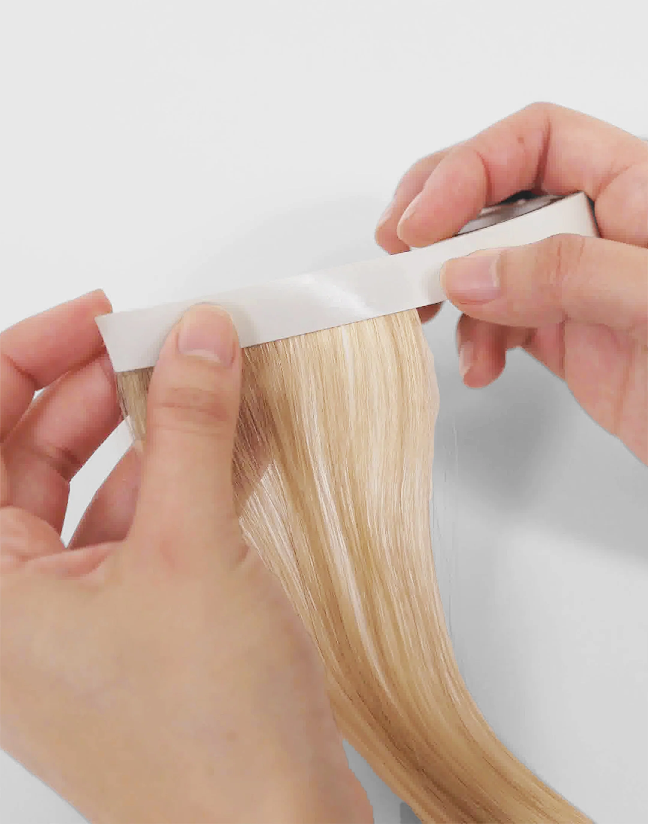 It’s time to re-do your do! Skinweft Tape is specially designed for the reapplication of Skinweft Tape-In extensions. This tape comes in a long, uncut roll allowing you to trim to perfectly match the size of each Skinweft extension. To use: Remove used tape layer from Skinweft piece. Align Skinweft Tape to Skinweft extension. Trim to size and firmly press together with Pro Tape-in Press. For extra security, apply a flat iron at 290o F to new Skinweft Tape and Skinweft extension to bond together.